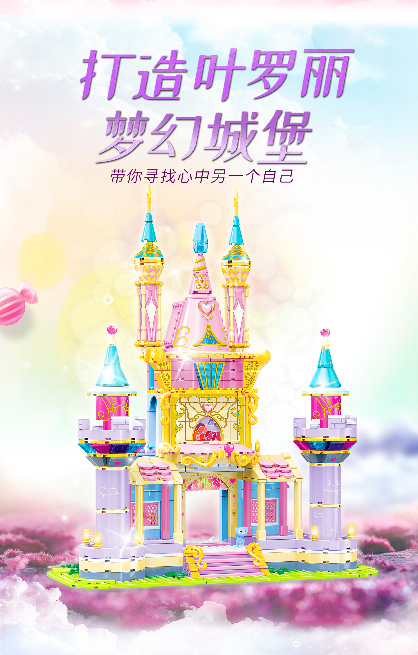 此次推出的葉羅麗積木場(chǎng)景,主要有靈公主的居住場(chǎng)所——靈公主花圣殿、以藍(lán)色為主色調(diào)的城堡——冰公主冰宮殿、以思思送給孔雀的別墅造型設(shè)計(jì)的房子、辛靈為庇護(hù)葉羅麗仙子,而創(chuàng)建的葉羅麗娃娃店,還有就是主角羅麗公主的城堡5款造型供消費(fèi)者選擇。
