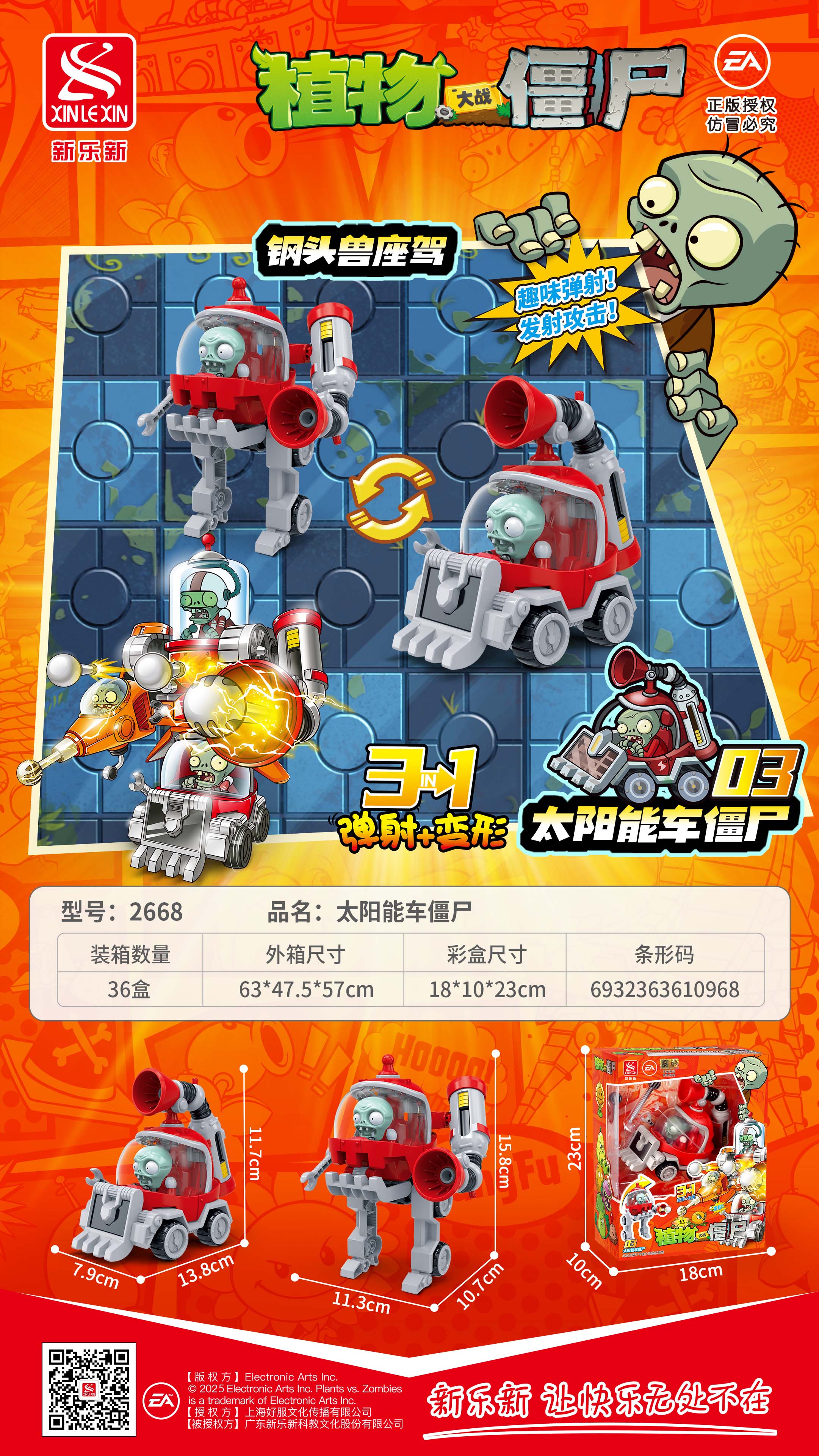 - 產(chǎn)品規(guī)格:太陽能車僵尸:7.9*13.8*11.7cm,鋼頭獸座駕:11.3*10.7*15.8